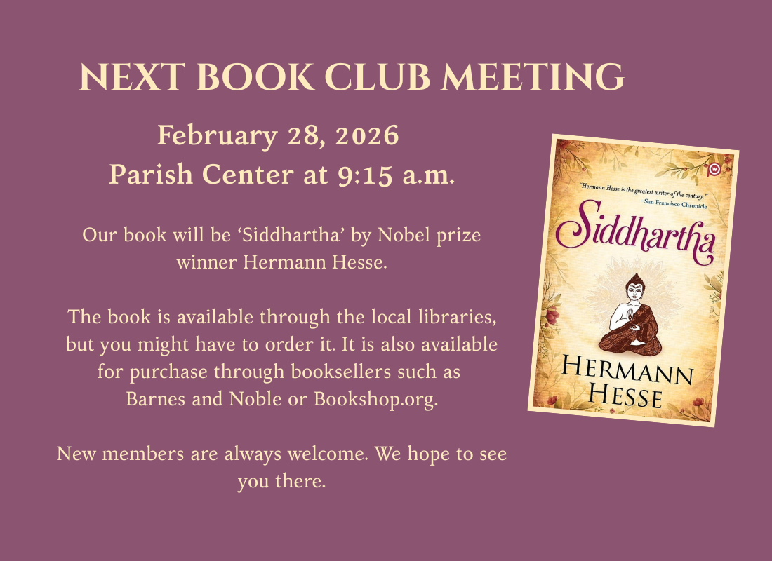Our February meeting will be February 28, 2026 in the Parish Center at 9:15 a.m.